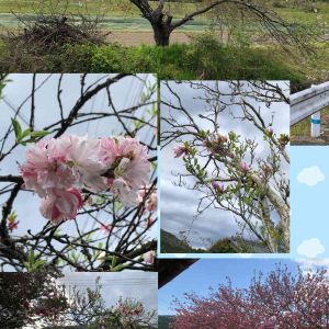 国道の郵便局から、県道の郵便局へ移動、途中、台風で折れた 源平花桃の木が復活していました。