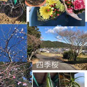 梅に蕾が出来ています? 秋に咲かずに今⁉️ チューリップ🌷芽が🌱出て来ました。 車庫に置いているアロエにも花芽が出来つつ有ります😳 今日は、姉の墓のお花を変えに 入り口には、両脇に四季桜が咲いていました。小高い丘の所から我が地区が見渡せます 風が強くて涙が出ます🥲