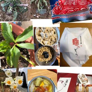 寒さのせいで生育の遅かったブロッコリーが🥦紫色になっています 夫が貰って来た黒いクリスマスローズ花芽が出て来ています 本当に黒かなぁ⁉️ サツマイモのスープ 子供が相方と挨拶に来たのでご近所さん赤飯饅頭と亀ドラ焼き 上にはヤクルトの七福神 頂いたお汁粉 昨年、咲いた水仙、次々と出て来て倒れて支え棒しました。 又、目が疲れると頭痛になるので しばらく休みます🙏🙇♀️ 皆様、いつもいいねを下さり有難う御座います🙏🙇♀️