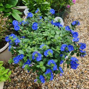 2年目の エボルブルス ブルーラグーン 1株植えです🌱 草姿が乱れてきたのを整えて20日 ポツポツと咲いてきています💠 かなり大きくなりました😊 お迎え時はあんなに小さな苗だったのにねぇ…と感傷に浸りたいところですが現実はしょっちゅうシオシオになっているこの子に大慌てで水やりをする日々💧 要植え替えです🌱