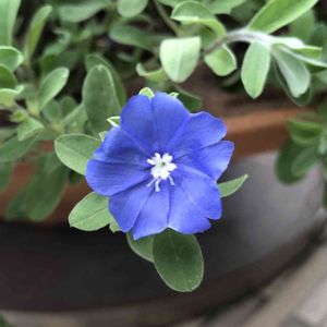 エボルブルス ブルーラグーン 少し前にお安くなったものを買ってきて、のびのびだったので切り戻してみたのですが、時期が遅いので咲かないんじゃないかと心配でしたが、最近やっとポツポツと咲き始めました🥰 ただ恐る恐る控えめにしか切り戻せず、やっぱりのびのびのままですが😅 キレイな青、うれしいな💙
