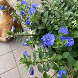 切り戻し後、花が咲いてきました💙 PW エボルブルス ブルーラグーンです。 花より葉っぱが目立つけど、これからもっと咲くのかな?🤔