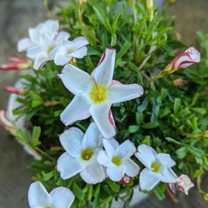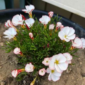 実家の庭の、オキザリスパーシーカラー。 今日は風🌬もなく、穏やかで暖かい1日でした。 春を待ちきれない様に、咲き出しました🌸🌸 咲き出す手前のマーブル模様も可愛い😍
