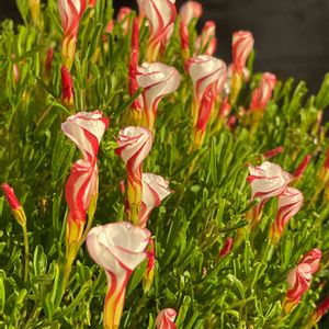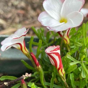🌿マイガーデン🌿より オキザリス パーシーカラー🍭 さっきまで咲いていたのに 花を閉じてしまった 今日の営業は終了! ですね。 ツボミも縞々でかわいい🦓