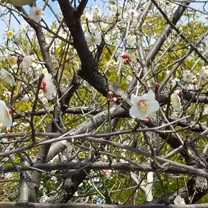 ウメが咲き始めました 伊丹市、臂岡天満宮(ひじおか)にて🤳 天満宮の梅といえば… 東風吹かば にほひおこせよ 梅の花 主なしとて 春を忘るな 菅原道真