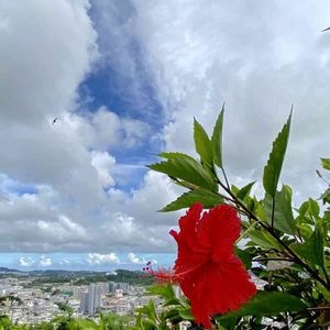 今朝は警報鳴る雷⚡️どしゃ降り☔️で凄かった💦人には厳しー💦、、植物には涼んで良かった〜🌿 先日7月8日『那覇の日』に出かけた『世界遺産 識名園』から南風原辺りを展望〜空が遠くまで見渡せて気持ち良い風༄吹く場所♡