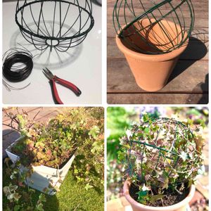 今日のお花🌿アイビー(へデラ)🌿 寄せ植えによく使うリーフで大好き❤ 増えすぎたので先月アレンジしました!名前を付けるならへデラの地球儀🌏😄 去年ハンギングで使っていた鉢を2つ合わせて ワイヤーで止め円形に⭕️そこに適当に絡ませて鉢に支柱を立て出来上がり🤗さてさて、丸くなってくれるか⁉️お楽しみ🎵