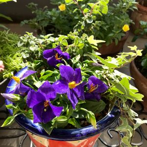 サントリーサフィニア ピュアホワイト⚪️ ペチュニア ナイトスカイ🟣 へデラフリル、ツルニチニチソウ☘️🌱