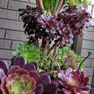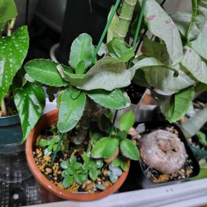 クラリネルビウムさん、葉っぱの配置やサイズが某特戦隊みたいになってる🤣 2枚目はチョコレートさん。 特戦隊の撮影をする際に延び延びになったツルが邪魔なのでまとめてみたらいい感じ✨️ しかし、1本だけ先端から50cm位 くらいのところでポキッとやってしまいました😭 仕方ないので小分けに切り、選定でカットしていたジェイドシャトルコックさん、トレビーさんと仲良くメネデール水に入浴♨️(4枚目) 3枚目はミルクコンフェッティさん。 重力と戦い続けてこんな姿に😅 面白いのでこのまま放置🤣