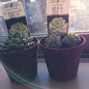 今日の多肉狩りに行って連れて帰ってきたよーw バニラシフォンと銀月は、ゆっこさんにいただきました╰(*´︶`*)╯♡ 大好きです❤️