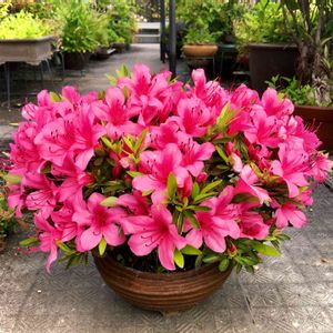 今年も満開🌸🌸🌸🌸🌸 以前住んでいた借家の花壇の剪定✂️で、偶然鉢に落ちた小枝から勝手に育ったクルメツツジ。気づいてから10年、ここ数年は毎年まん丸のピンクボールになります🥰