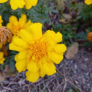 少し前のお散歩途中に咲いていました。いつものお散歩コースからちょっと横を見ると黄色💛お花が咲いていて、引き寄せられました。