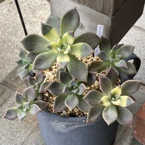 晴天☀ ベランダ日陰で24.2℃🌡️ 数年前までは日焼けを気にせずに作業してたのに、最近はリカバリーの速度が遅いんで避ける様になりました🐥 劣化してんなぁ…💨 ◆グラプト系 久し振りに朧月とキュウ(桜月とか初恋とも言われてる)が目に入ったんで、グラプト纏め鉢を久し振りに📸 忘れてないよ!年1で植替えしてるはず…? (したした😆) 4) もう一鉢あった。 ラブロー&レッピンさんもいます♬ 作業場所が陰になるまで、あと1時間ぐらい⏳️ 写真撮るか! どうぞ楽しい1日をお過ごし下さい🌹🌿