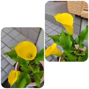 黄色のカラーが咲いています! 小さい芽?蕾?も開いてきました。 スラッとしたカラーじゃなくおチビちゃんなカラーです😅🤣