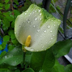よく振りますね☔ 梅雨の様な天気です 鬱陶しいわ😞 カラーがつぎつぎ花が上がってきました😃💕 雨に打たれて一際白色がキレイに感じられます😊✨ 大型連休も今日が最終日 いろんな方に お疲れ様でした😊