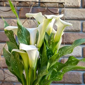 先程投稿した カラー'ピカソ' の全体像です🤍🌿 とってもおしゃれな雰囲気でシックな色合いが魅力的です𓍯 切り花としてもおすすめですし、斑入りの葉は観葉としても楽しめます🌱