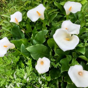 こんにちは〜😊 午後から、やっと雨も止みホッとしていますが、皆さんの所は大丈夫でしょうか? 少し前の庭のカラーですが、鹿にかじられたお陰で、たくさん咲いてくれましたよ🤍🍃✨ いつも見て頂き、どうもありがとうございます❣️