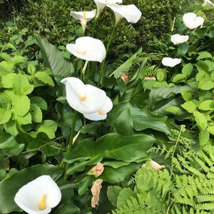 カラー:colla 【詠歌】 『☔️雨に濡れ💦しずくに光る花もよう より美しき無垢のカラー也」 @"In the rain, the flowers are shining and blooming beautifully while bathing in the raindrops. It ’s a pure white flower with a very nice Collar⁉︎ 訳意:雨降りの中で、花が雨しずくを浴びながら綺麗に輝いて咲いている。 真っ白でなんとも素敵なカラーの花である🐶 カラーは溌剌としてしめやかな乙女のように清楚で美しい、凛とした姿の白い花デスね🐶 ♡カラーの花言葉: 「乙女の*しとやかさ」「清浄」 @こんな感じがするような、雨雫の中でのカラーの美しさが*しめやかに観えましたデス🐶 「いとこめかしう*しめやかに、美しきさまし給へり」源氏(1001‐14頃) *しめやか:しとやかとは同意 ☆黄色の花のカラーの花言葉:「壮大な美」 ☆ピンクの花のカラーの花言葉:「情熱」 ☆紫の花のカラーの花言葉:「夢見る美しさ」 📝カラーの基本情報 科・属:サトイモ科・オランダカイウ属 和名:和蘭海芋 英名:Calla lily, Arum lily 学名:Zantedeschia aethiopica 原産地:南アフリカ ♧カラーの特徴 カラーは草丈15cm~1mになる多年草で花の色は赤、オレンジ、黄、ピンク、白、紫の、襟(collar:名前の由来)に似た形状の花を咲かせます。 カラーの葉の形は三角形のやじり形やほこ形があり、長く太い茎が特徴デスら😸 by Kazyan’s Green Shot Artistic:Calla lily May 7,2021/past pm 00:30’:iPhone12Pro📱shooting May 11,2021/past am 06:20’:upload