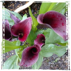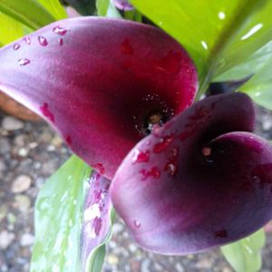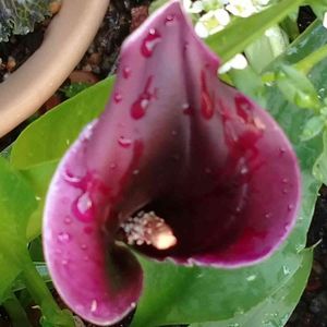 チョコレート色の カラー✨ 今日、発見しましたが、 チョコレート色の葉っぱも1枚ありました‼️ なが〜く、咲いています🎵