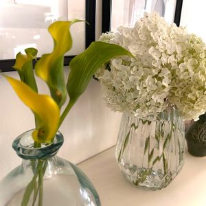 雨が上がったのでお庭のアナベルさんカット✂️して来ました! 頭が重くて地面に寝そべってました💦 黄色のカラーは母の日の次男からのプレゼント🎁💛黄色が好きなのわかってたみたい🤗こちらも鉢植えをカット✂️しました