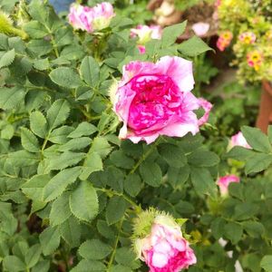 🌹十六夜薔薇(イザヨイバラ)🌹 真ん丸く咲きそうで咲かない。何処かが欠けるところから十六夜の月🌙に見立てこの名前がついたとか。。。 綺麗に丸く咲くこともあるそうなのだか十六夜薔薇はこれが満足の子。 ガクはトゲトゲ、葉っぱは山椒の葉に良く似てる。 私の薔薇とイメージが違うのだが薔薇🌹なのです。 。。。勿論、この子も可愛い( *´艸)