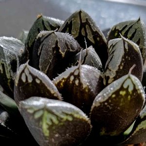 ●ススキノキ科 ツルボラン亜科 ●ハオルチア属 ●ハオルチア 交配種😻😻 一部の葉に白い所発見。…🤔ナニコレ 黒の下は白いの?🤔🤔🤔