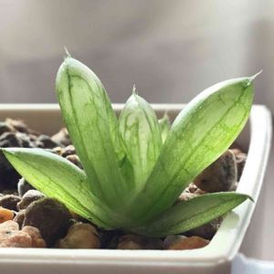 こんにちは😃天気は良いのですが風が強い🌪️です。 ハオルチア交配種です。もう少し日差し☀️を浴びると、ドドソン紫色になると思いますが、これはこれで良いです✨😆。