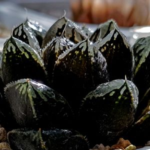 One plant a day. Haworthia 赤肌コエルマニオルム 赤肌でしたが、うちの環境では黒くなりますね😏この色は交配で使ってみたいですが、まだ花芽上がってないな〜🤔