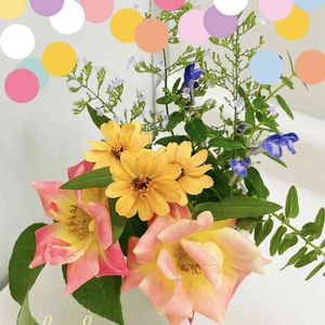 〜職員トイレの花だより〜 NO.15 毎回悩みます😄紫陽花にしようか、ビオラの切り戻しにしようか、ペチュニアさん⁈ それとも、休んじゃおうか。 ダメダメ。急いでこの組み合わせにしました🙋♀️ バラ ピンクバシーノと名前不明の白バラ 絵になるスミレ 大好きなレースフラワー オルレア