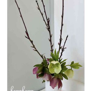 〜職員トイレの花だより〜 NO.4 わが家のクリスマスローズと桃を組み合わせて見ました🥀