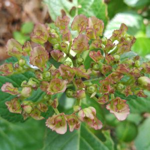 品種不明株その1 こんなんなりました♥️しかもピンク~(⁎˃ᴗ˂⁎)❓️❓️キャー このアジサイがなんなのかちっとも分からないので似てるのご存知でしたら教えてくださいm(_ _)m💦