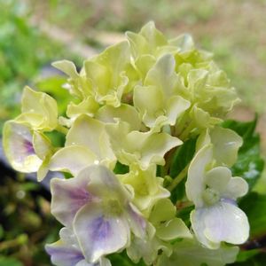 ラグーンです‼️ 2株あるんだけど1つはミョウバンじゃぶじゃぶもう1つはミョウバンちょっぴりにしてみましたヽ(*´∀`)ノ♪ そもそも植えてある場所が離れているので同条件とは行かないと言うことを踏まえて…(´- `*)💦 今こんな感じでーす☝️ 右下だけミョウバンちょっぴり株 ラグーンほぼ両性花だけの花玉とかあってなかなか面白味(⁎˃ᴗ˂⁎)✨ 庭植えのみどりのまとめ、差し替えたり株姿載せていきまーす。よかったらチェックしてみてね💜