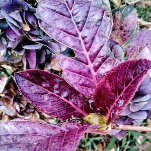 もうひとつ‼️ お隣さんのアジサイ 葉っぱがこんな綺麗な紫色に💕 くぅ~( ω-、)💦嫉妬するぜぃ うちにはこんな葉っぱひとつもないぜよ⁉️