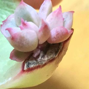 初めて投稿します。 葉から赤ちゃんが出て来ています。根が出てないのですが、ここからどう育てたらいいのでしょうか?このままにしておけば 根が出てくるんでしょうか? 多肉初心者ですので、どなたか詳しく教えていただけたら嬉しいです。(というか.. わかりません💦)よろしくお願いいたします!m(_ _)m
