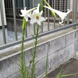 実家前の アスファルトの割れ目から‼️百合の花が🌼 テッポウユリ? 凛として たくましい‼️‼️🤣