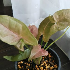 今日 ホームセンターで 売れ残りで 半額になった ちょっと悲しげな シンゴニウム見つけて😳 うちに帰って 着替えさせたら あら❤️あら💟 なかなか 愛らしいこと🎶 168円は めっけものよね😍