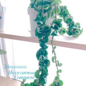 こんばんは*・☪·̩͙ ·˖✶ chopinさんの🏷エンジェル祭りに 参加させて頂きます💖 1周年おめでとうございます🎉 植物少ないのでAIに弾かれちゃうかも 。:+((*´艸`))+:。 ぷぷっ ホヤ カルノーサコンパクタ成長してる? 葉っぱもシワシワだったので 昨日、暖房ありの部屋に移動して葉水しました (*˘︶˘*).。.:*♡ ズッキュ〜ン💘💘💘💘💘