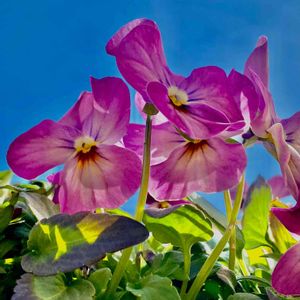 ♡青いお空とビオラさん♡ おはよう〜💕お空って大きいね💕どこまで 続いているのかな〜💕とっても青くて〜💕 ジッと見つめていると💕溶けていきそうね💕 ねぇねぇ〜💕ビオラさん教えて欲しいの💕