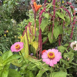 百日草が咲き始めました ヒモゲイトウ カンナ ベンガルタイガー🐯など