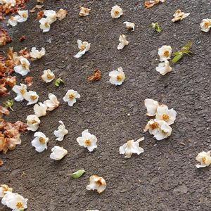 ヒメシャラの花 木で咲いているときは目にすることが無く 落ちてきて初めて咲いていたことに気づく… 毎年の事ながら ちょっと寂しい