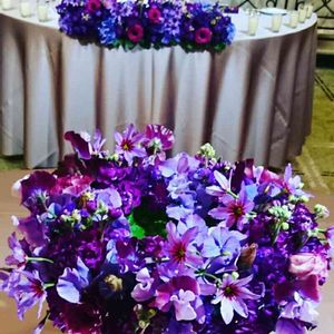 今日のテーブルコーディネート 紫のリューココリーネを中心にして