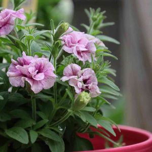 5月9日 (月) ☁️ 6:48AM おはようございます🤗 🌸ペチュニア·イチゴラテ🌸 さん こちらは去年 挿し芽して成功し、今年の開花です 初めてです😊💕 嬉しいです~🤭💖