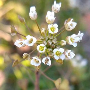 薺(ナズナ)🌿🤍 小さな白い小花の集合体でよく見るとかわいいです😄 春の七草のひとつ。 別名 ペンペン草 三味線草 🏷ちっちゃいものクラブ