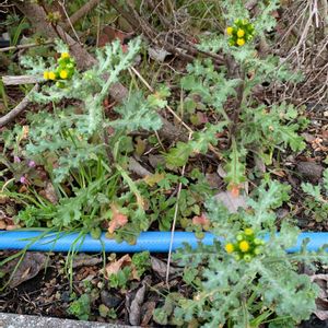 職場の花壇…? なんちゃって花壇😅に所々に咲いている花です🌼 初めてみた時は、シロタエギクのように見えましたが 大きくなると、ちょっと違うみたい🙁
