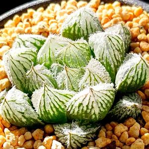 ●ススキノキ科 ツルボラン亜科 ●ハオルチア属 ●白雪絵巻×グリーンウッディー😻😻 もう少しサイズアップすると、窓が綺麗に見えるかも知れない期待がもてる交配種です。😆😆🤓😆