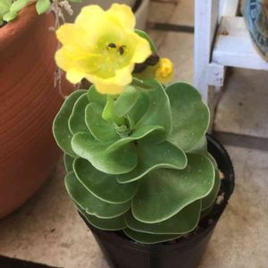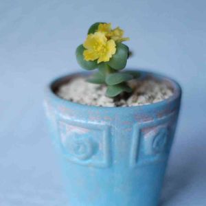 冬に寒さで弱っていたモロキニエンシスさん😊 うんと小ちゃくなってしまって、他の多肉ちゃんに埋もれて見えなくなってたけど、今日見たらカワイイお花が‼️🌼 健気だ(ˊo̶̶̷ᴗo̶̶̷`)