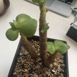 おはようございます♪ キラキラのお日様が出ました✨✨ 錦玉園さんでお持ち帰りした、一目惚れの「モロコエンシス」 売り物では無かったみたいだけど💦譲ってもらっちゃった🤗 しっかりした幹でポーチュラカ属の別名「多幸樹」だそうです❤︎ 別名が素敵過ぎる✨✨あやかりたい✨✨ 元気に育つと良いなぁ~*:ஐ(●︎˘͈ ᵕ˘͈)
