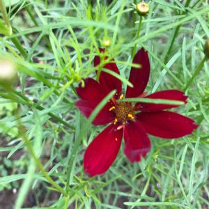 コレオプシス ホットパプリカ咲き始めました‼️ カタログの写真だともっと鮮やかな赤に見えたけど 咲いてみたら意外とダークレッドっぽく チョカモカに似てますね❗️ でも私好みです❤️