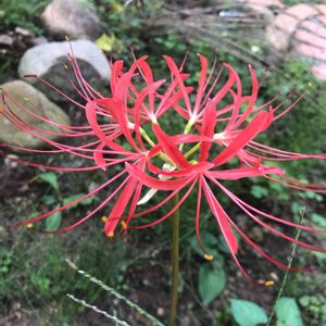 彼岸花咲きましたーー🤩 10球ずつ2箇所に植えたうち 比較的日当たりのいい場所で5球のつぼみ 日当たりが悪い方は日照もだけど ドクダミの群生地😅になっていて パッと見1つもでていない。。。 うちの庭、球根類の育ち良くないなあ😞
