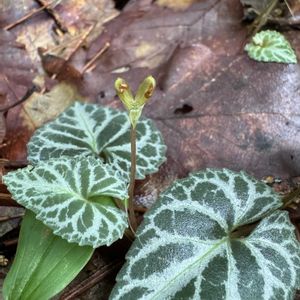 ウメガサソウ(ツツジ科ウメガサソウ属) 北海道〜九州に分布 高さ5〜10cmの常緑の草状の小低木 海岸や山地の林内に生える 花の形が梅に似て、下向きにつくことが名の由来 いつも事ですが 小さく低いのでなかなか 綺麗に撮れません😂 7/8.9